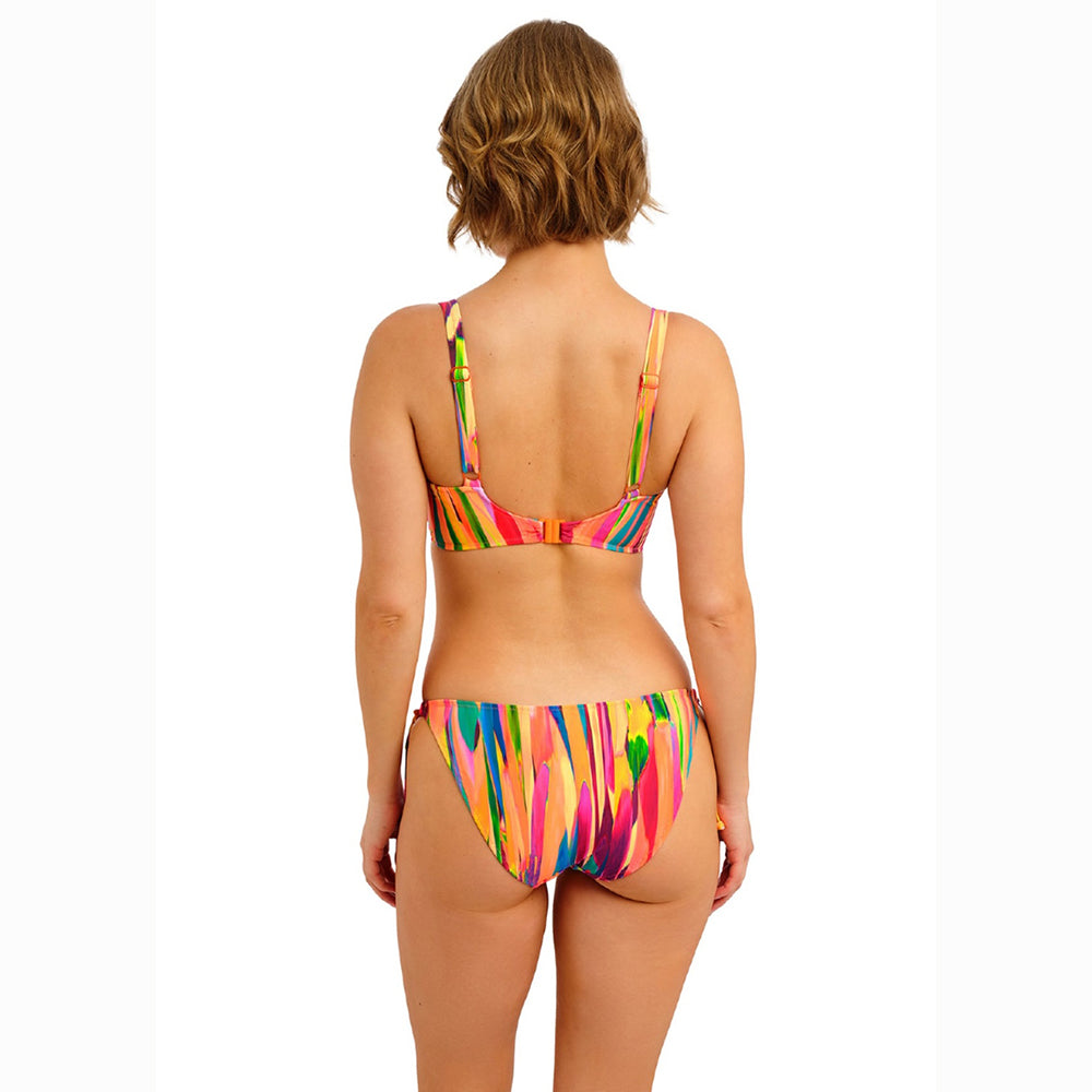 Make a bold statement with the San Antonio Fiesta Underwired Plunge Bikini Top, designed for confident style. The low plunging neckline offers minimal coverage for maximum impact, while underwired lined cups deliver essential shape and support. Fully adjustable shoulder straps ensure a customised fit for all body types. Vibrant oranges, pinks, and yellows blend with striking teal and green accents, capturing the spirited energy of a fiesta. Perfect for those seeking a striking swimwear piece that combines flattering construction with eye-catching colour.
