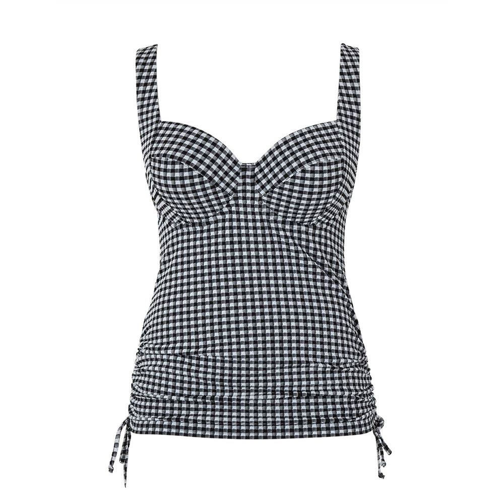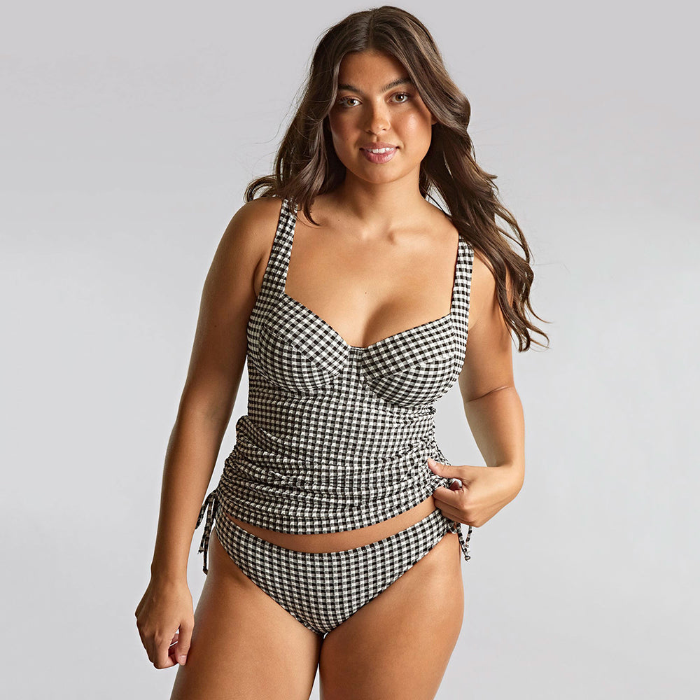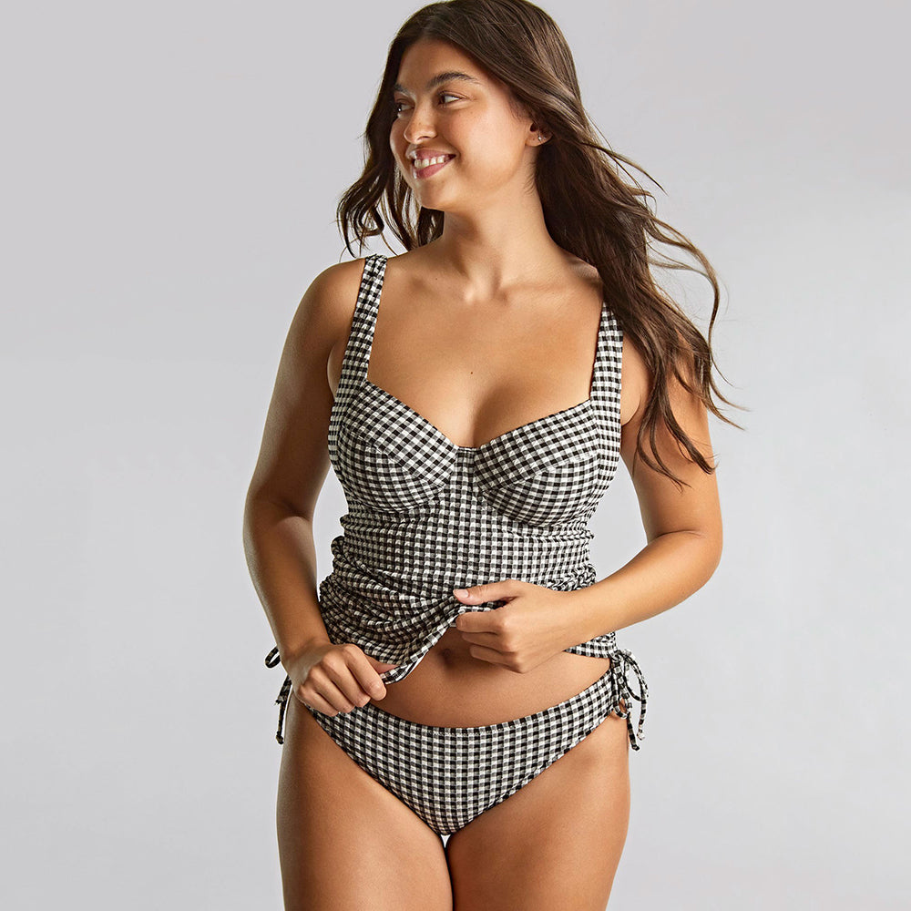 Crafted for next-level fit from sustainably sourced fabrics, our body-loving Iris tankini is designed to keep you supported during all your sun-kissed moments. As the most supportive tankini in our collection, Iris is made from custom woven gingham fabric, offering a stylish and confidence-boosting fit. Whether you’re lounging by the pool or enjoying the beach, this effortless style promises poolside perfection, combining comfort, support, and timeless elegance.
