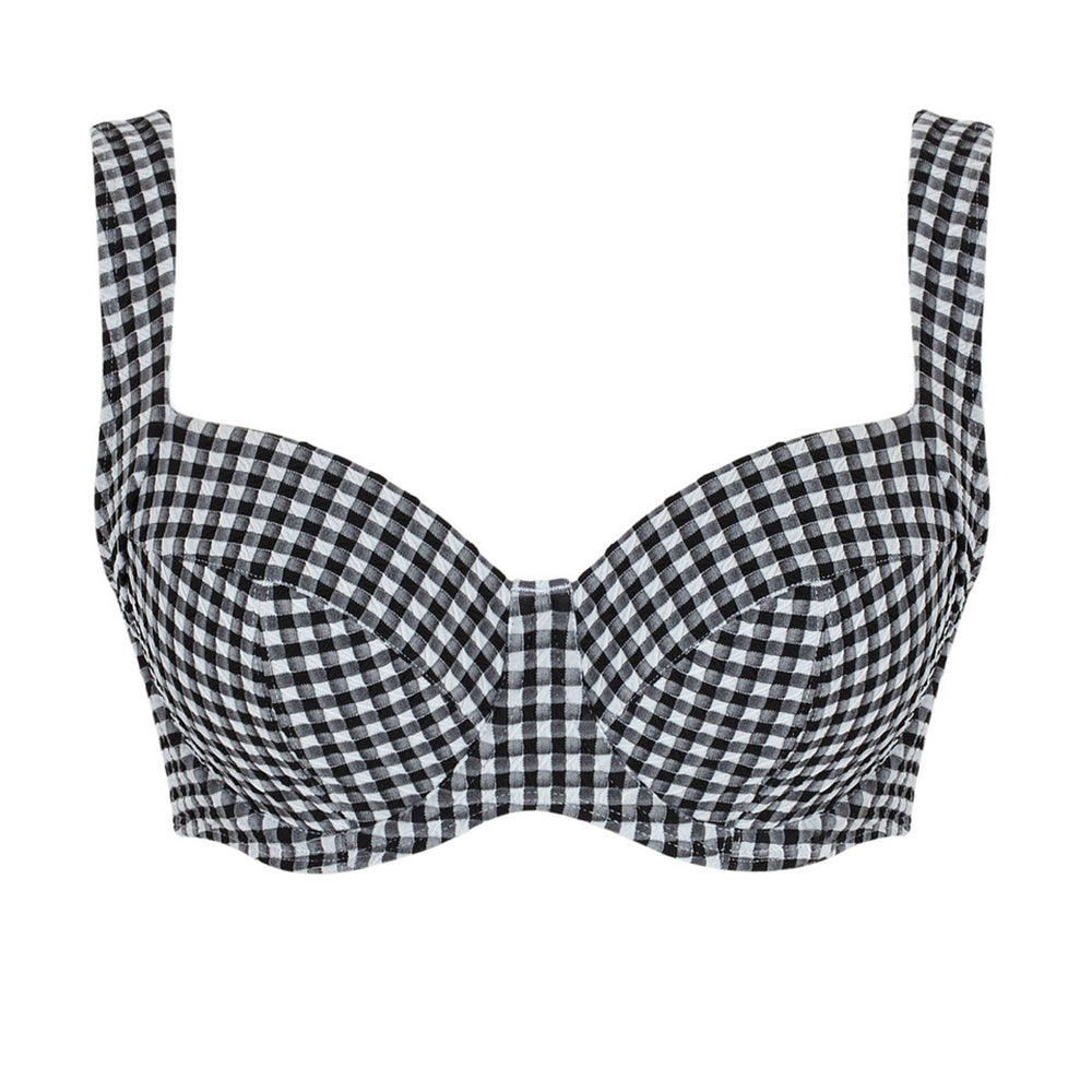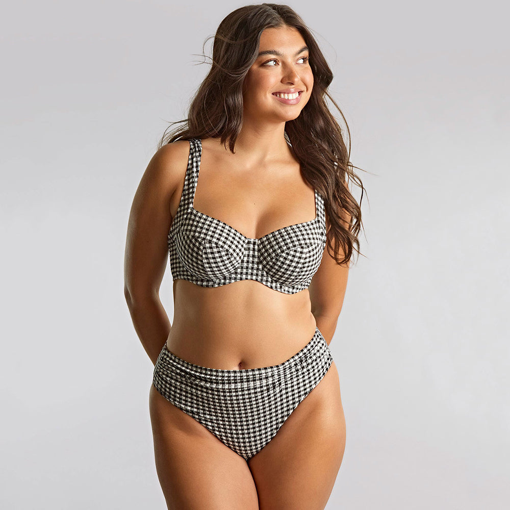Designed for full-coverage comfort, our Olivia bikini offers the support you need to enjoy life - whatever your shape or size. The wide straps ensure a comfortable fit on the shoulders, providing added support for a secure feel. Made from timeless, super-soft recycled gingham fabric, this chic set is not only eco-friendly but also a must-have in any swimwear wardrobe.