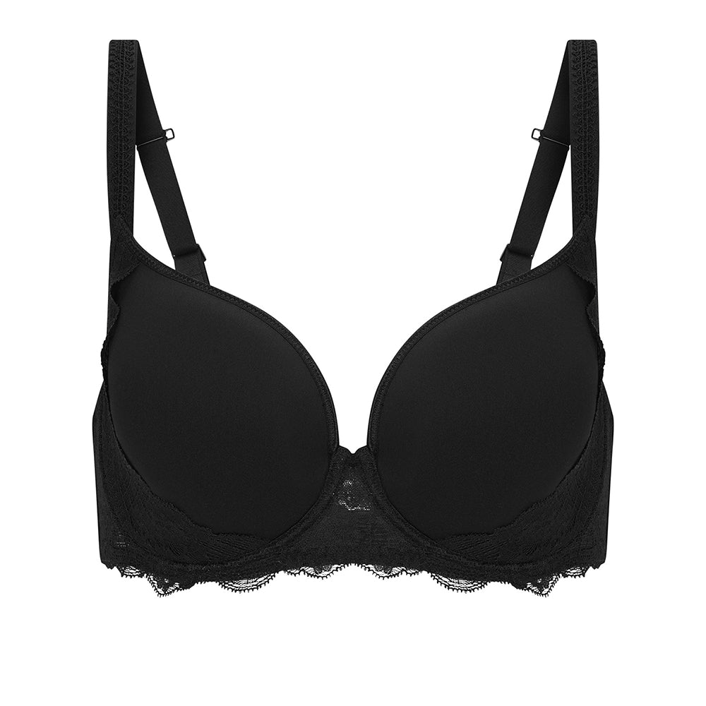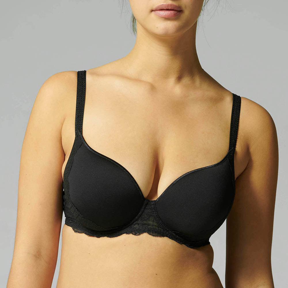 Reve Spacer Plunge Bra is made from a comfortable lingerie material that feels soft against the skin. This bra has a deep plunge and a gorgeous lace detail along the underwire. Adjustable straps and T-back to centre them in the middle of the back.