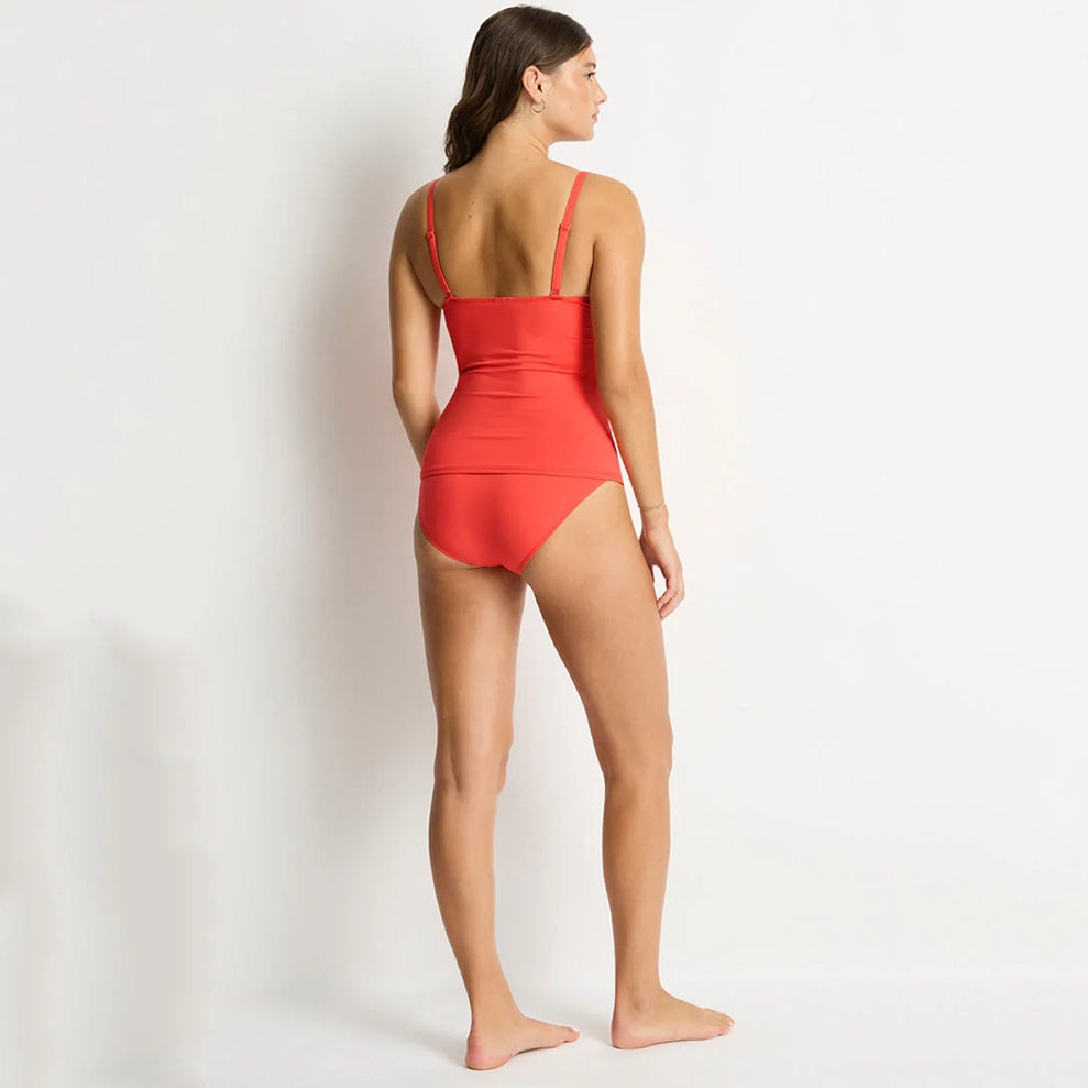 The Essentials Edit features Sea Level's classic bikini shapes in fresh seasonal colours. Made from eco-friendly recycled fabric, this collection offers new and best-selling styles designed for comfort, support, and a flattering fit. The Essentials Edit Cross Front Tankini features soft cup support, adjustable straps and powermesh lining support to ensure you feel confident and stylish in sustainable swimwear.