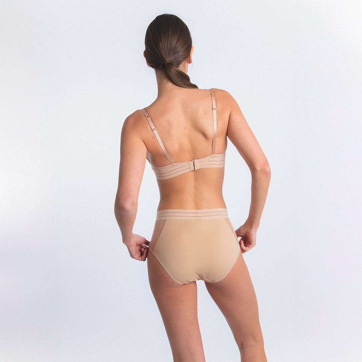 The Nufit Moulded Push Up Bra combines engineered support with luxurious comfort. Its opaque moulded cups feature progressive foam technology that sculpts and enhances your décolleté with a naturally lifted silhouette. The ultra-soft Lycra Beauty Intimate Sculpt-certified microfibre feels incomparably gentle against the skin, whilst the distinctive tri-band elastic system—featuring both transparent and opaque bands across the back and between the cups—provides exceptional support without compromising on comfort. A sophisticated choice for those seeking both performance and refined aesthetics.