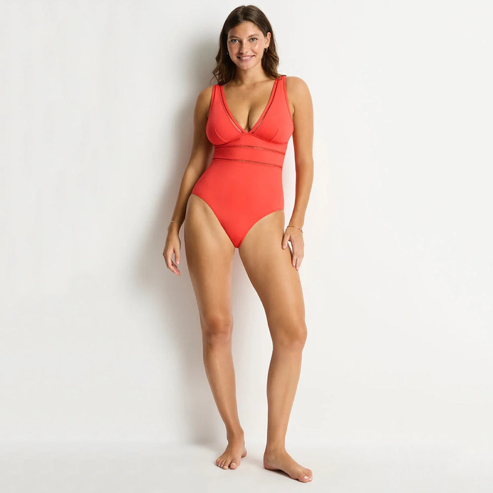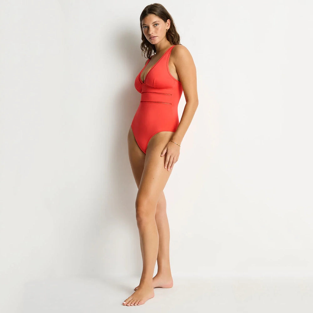 The Essentials Edit features Sea Level's classic bikini shapes in fresh seasonal colours. Made from eco-friendly recycled fabric, this collection offers new and best-selling styles designed for comfort, support, and a flattering fit. The Essentials Edit Spliced One Piece features removable soft cups, adjustable straps and powermesh lining support to ensure you feel confident and stylish in sustainable swimwear.